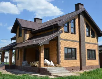 Остекление коттеджа окнами коричневого цвета